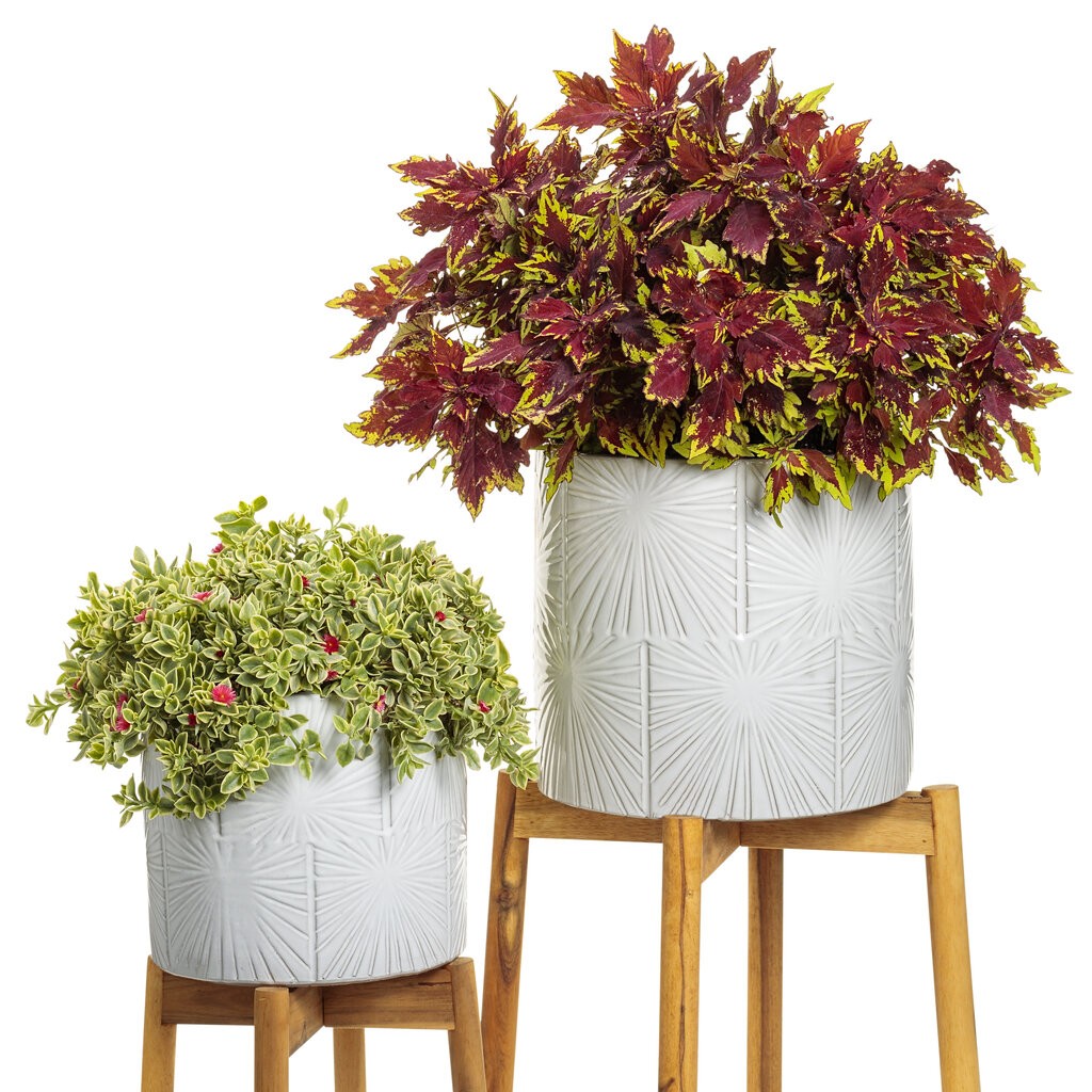 Lapojums – bordo krāsā ar gaiši zaļu lapas ārējo galu, lapas ir šauras un garenas, zobainas. Izplešas diametrā ap 30-40 cm. Izturīgs pret karstumu, ir viegli kopjams. Piemērots audzēšanai gan dobēs, dārzos (piemēram, robežu ierīkošanai), gan puķu podos, traukos un kastēs – iekštelpās un ārtelpās.