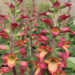 Aprikožu oranži ziedi, kuriem ir sarkanas malas.