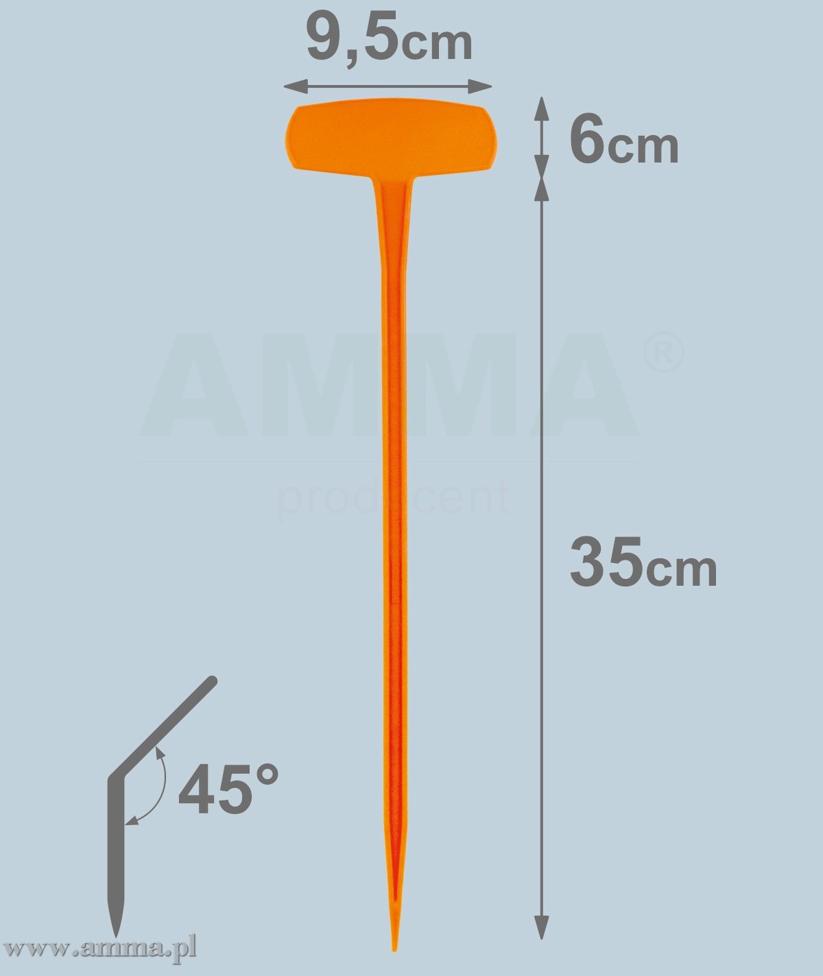 9,5cm x 6cm, kājiņa 35cm.