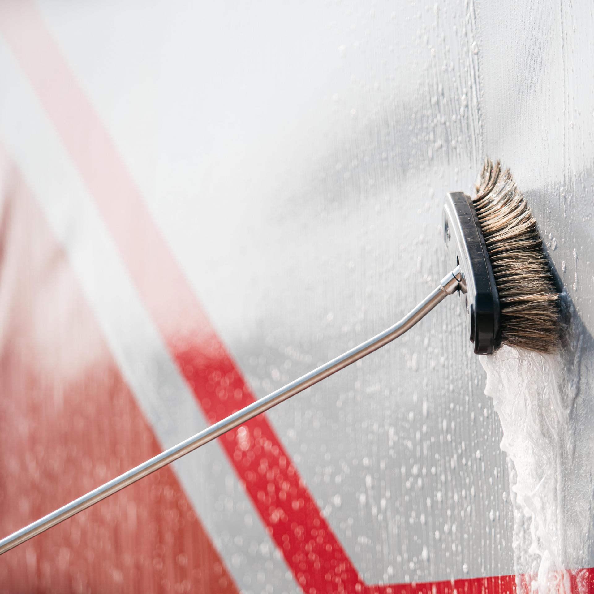 Virsmas mazgāšanas birste ar dabīgiem 6cm sariem un gumijas stiprinājumu aizsardzībai pret tīrāmās virsmas bojājumiem.