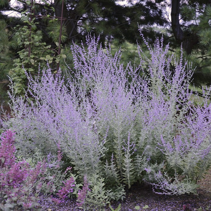Ziedi ir zilā un violetā krāsā, izvietoti garās, zarainās ziedkopās. Piesaista bites un citus kukaiņus, ir aromātisks. Rudenī un ziemā stublāji kļūst pelēcīgi. Izturīga pret sausumu. Piemērota audzēšanai dobēs un puķu podos, kā arī grieztajiem ziediem.