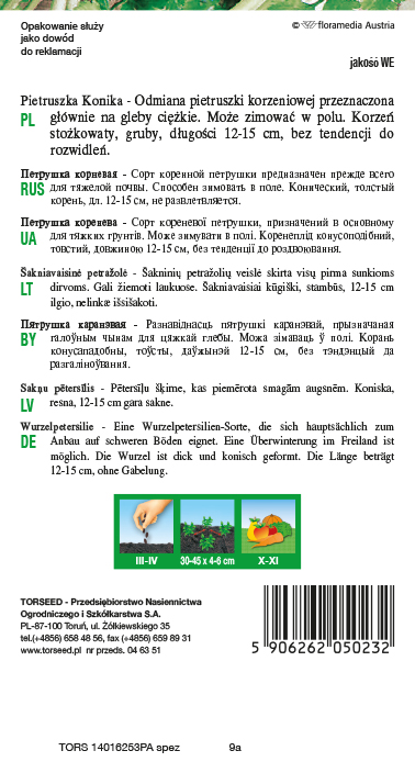 Pētersīļu šķirne, kas piemērota smagām augsnēm. Koniska, resna, 12-15 cm gara sakne.