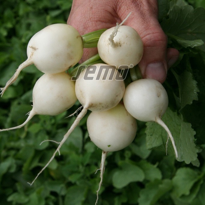 Redīsi, kas ir agra šķirne ar spīdīgi baltām, vienmērīgi augošām un pievilcīgām saknēm, kas sasniedz aptuveni 3 cm diametru. Tie ir ļoti piemēroti agrīnsi lauka audzēšanai un ideāli izmantojami saišķu veidošanai. Saknes izceļas ar augstu ēšanas kvalitāti, padarot šo šķirni par vērtīgu izvēli svaigai lietošanai.