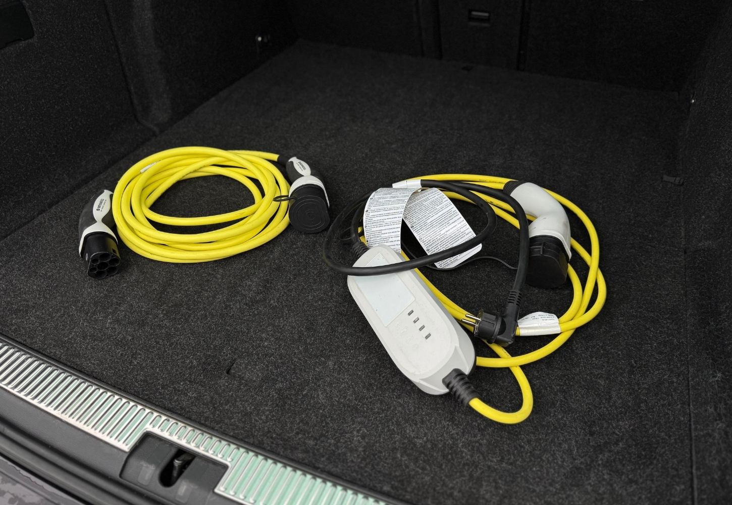 Type 2 uzlādes kabelis un mājas uzlādes kabelis (220 V).