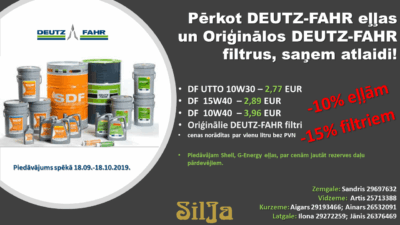 DF eļļas un filtri ar atlaidi! Akcija spēkā līdz 18.10.2019. Nenokavē un parūpējos par savu traktoru laicīgi!